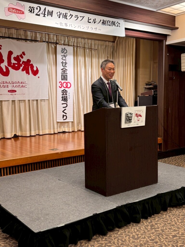 第24回という節目の例会の開会宣言は大槻写真事務所大槻健二さんが行いました。いつも例会風景の素晴らしい写真を撮って頂きありがとうございます、裏方で活躍されてますが今回は壇上でPRして頂きました。